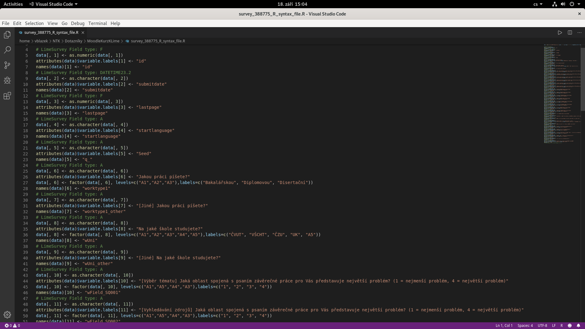 -A R (syntax file) je opravdu syntax file. Data jsou stažena tak, jak jsou zapsána ve statistickém programovacím jazyce R viz obrázek). Může se hodit například pro textuální analýzu, prováděnou v R, nebo pro word processing.